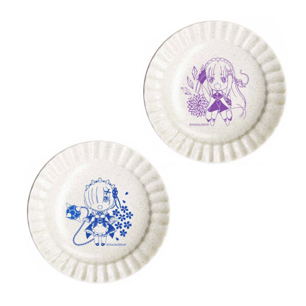 -直徑約16.5CM的陶瓷盤子,分別有愛蜜莉雅和雷姆的Q版畫。