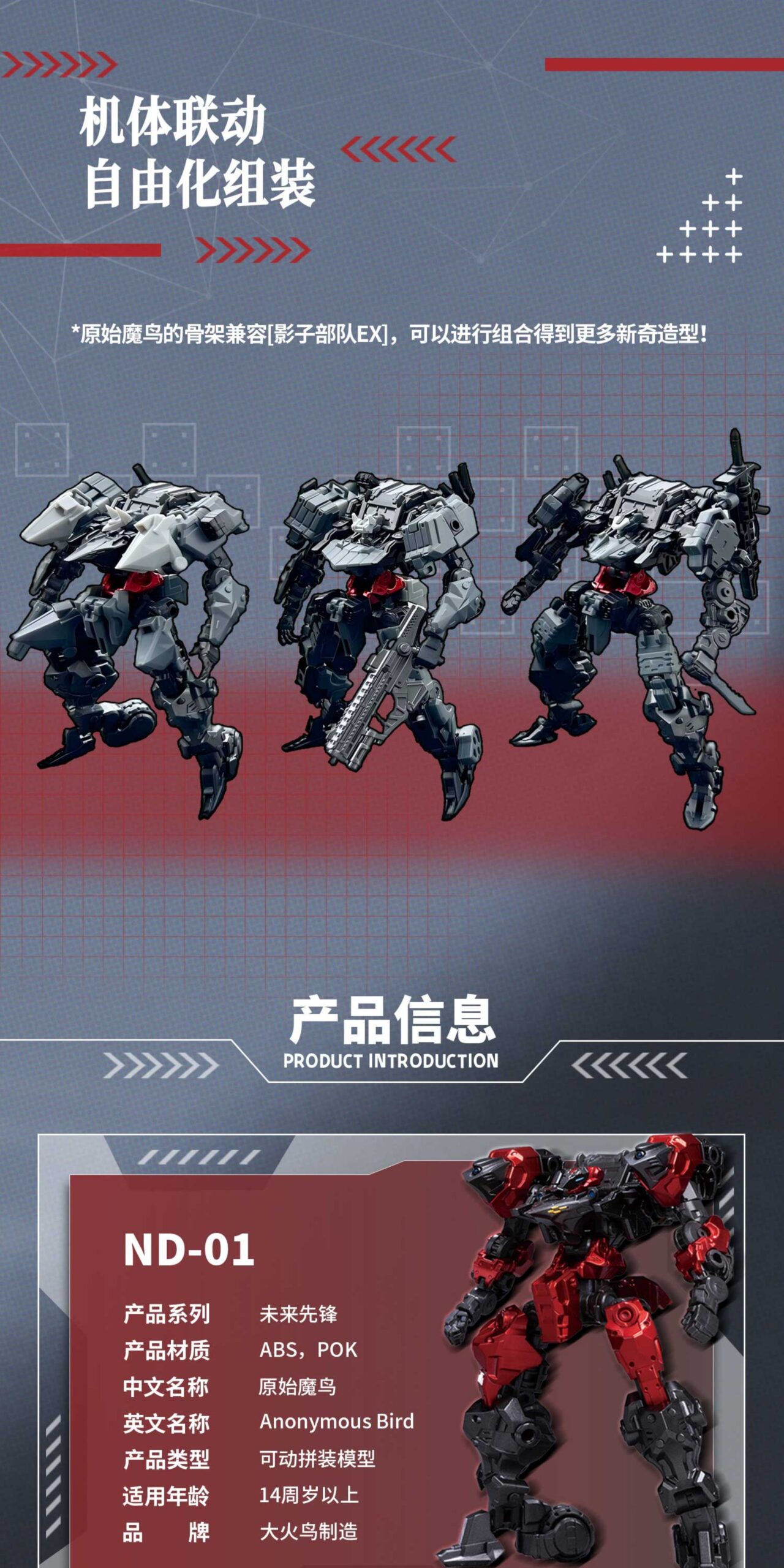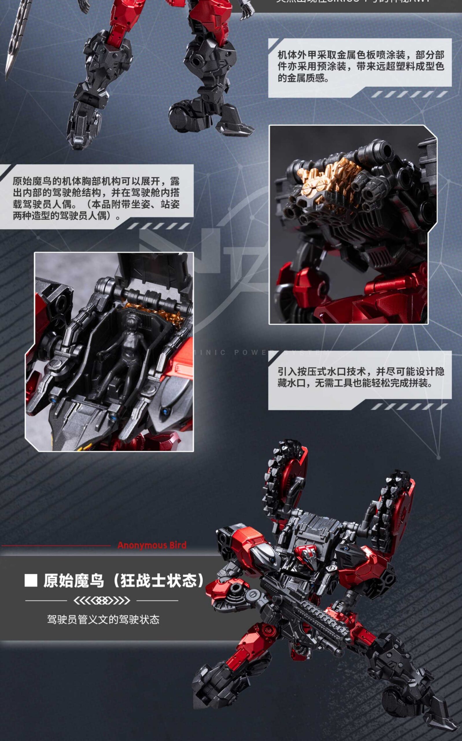 由大火鳥製造傾力打造的原創變形機甲「原始魔鳥」隆重登場!這款作品將「英雄式機器人」與「凶猛猛禽」完美融合,呈現出極具侵略性的美學設計。