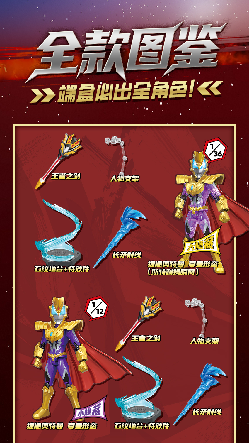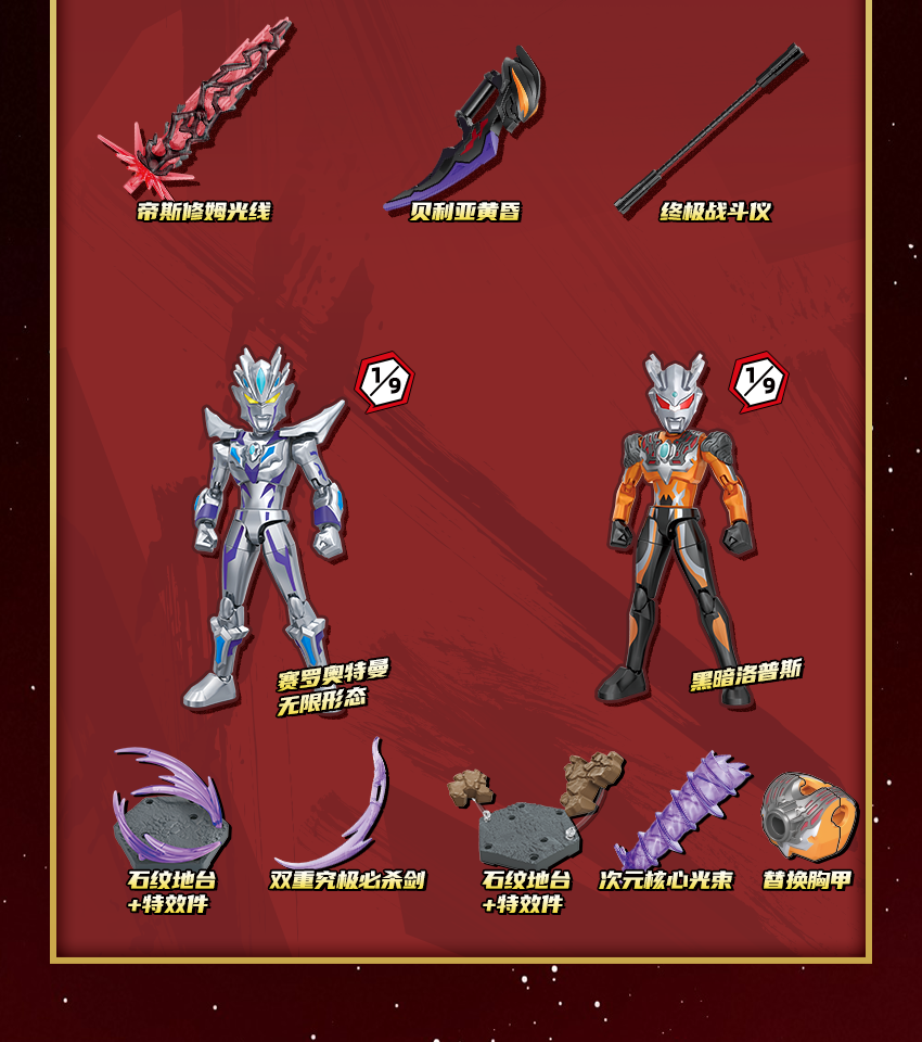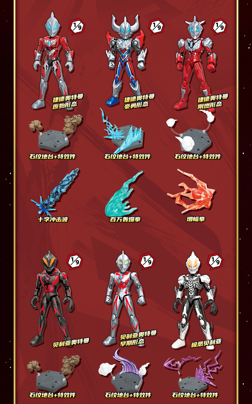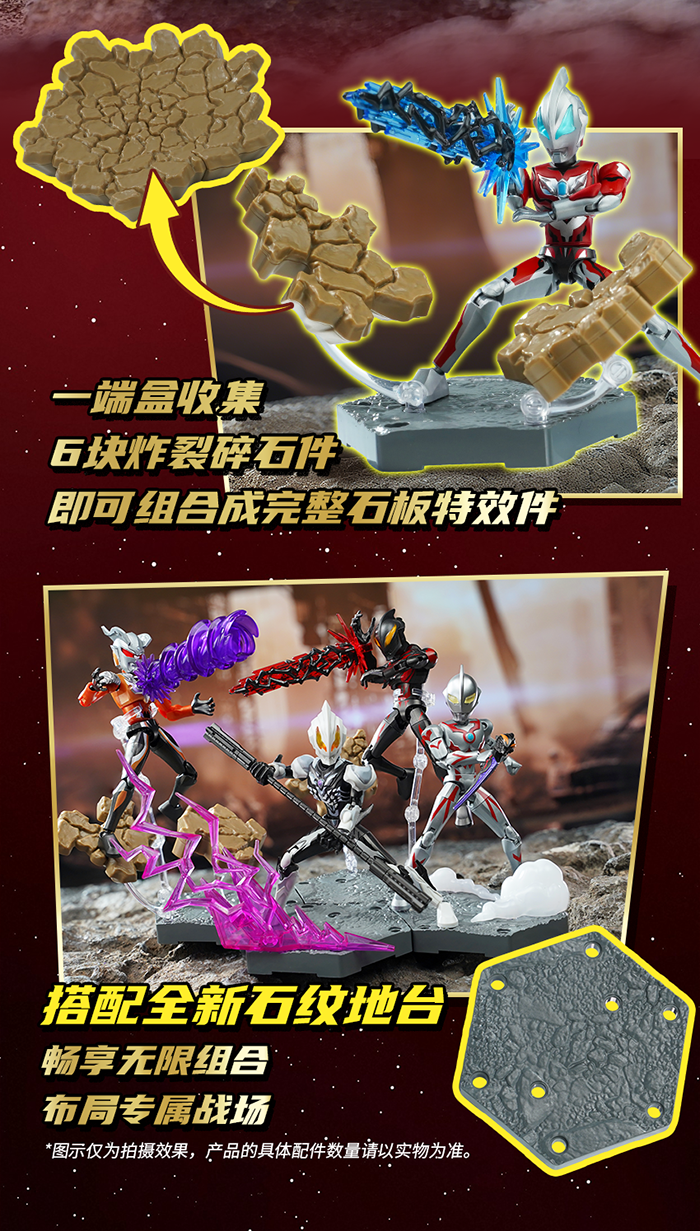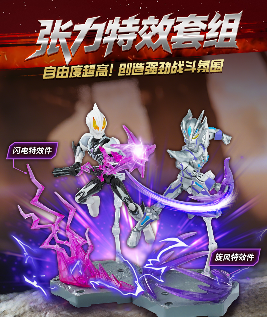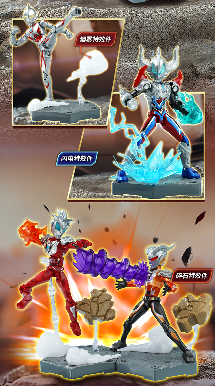 -會附帶各種特效零件(如斯派修姆光線等),讓玩家在展示時能夠重現英雄們的必殺技!
