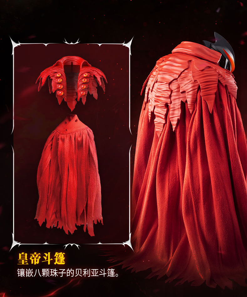皇帝斗篷(皇冠斗篷): 豪華的紅色斗篷,披肩部分鑲嵌了八顆寶珠,工藝精緻,層次豐富。