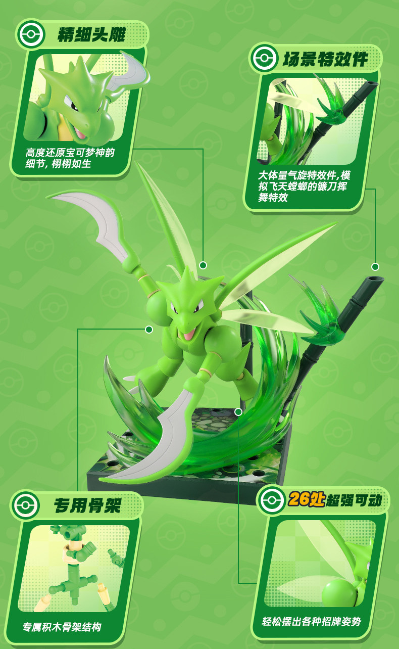 雙臂鐮刀採用銳利造形設計,展現蟲系戰士的霸氣。