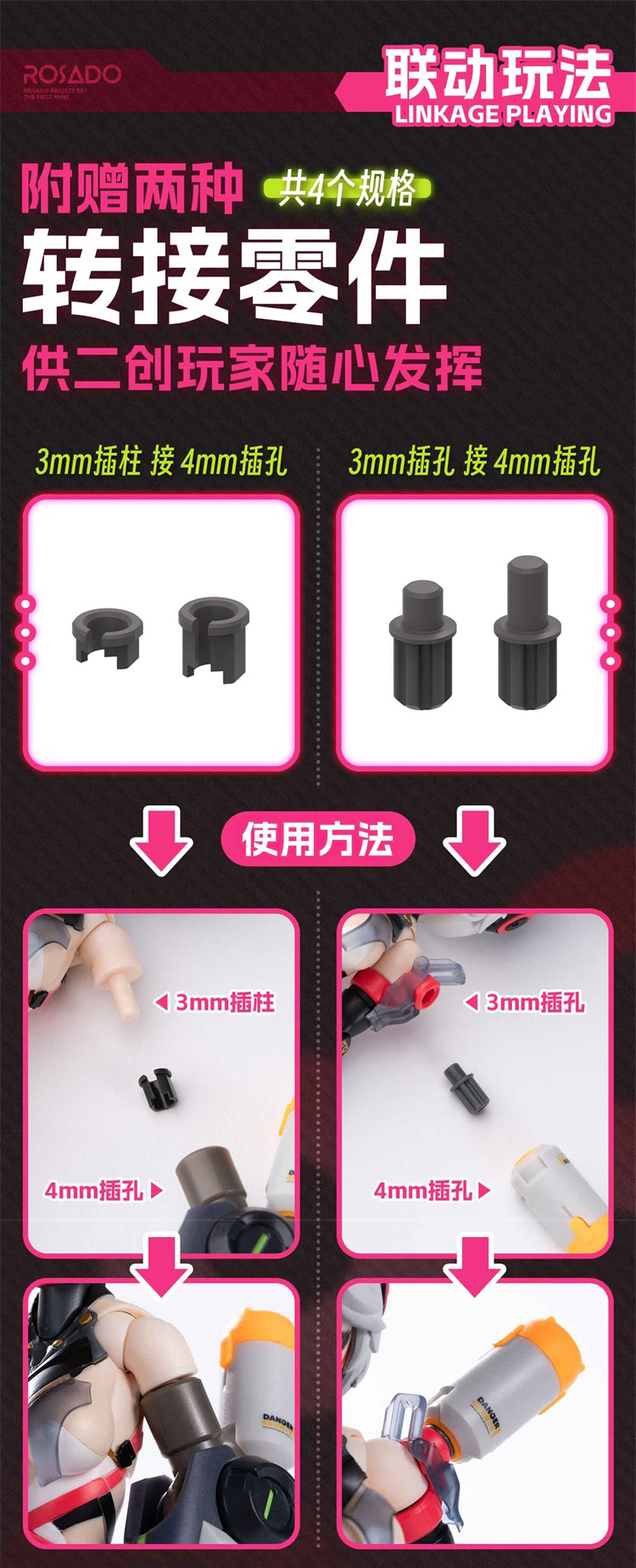 -3mm標準接口:全身多處配置3mm孔洞,可安裝其他3mm軸配件,加上另有轉接零件使玩法自由度高。