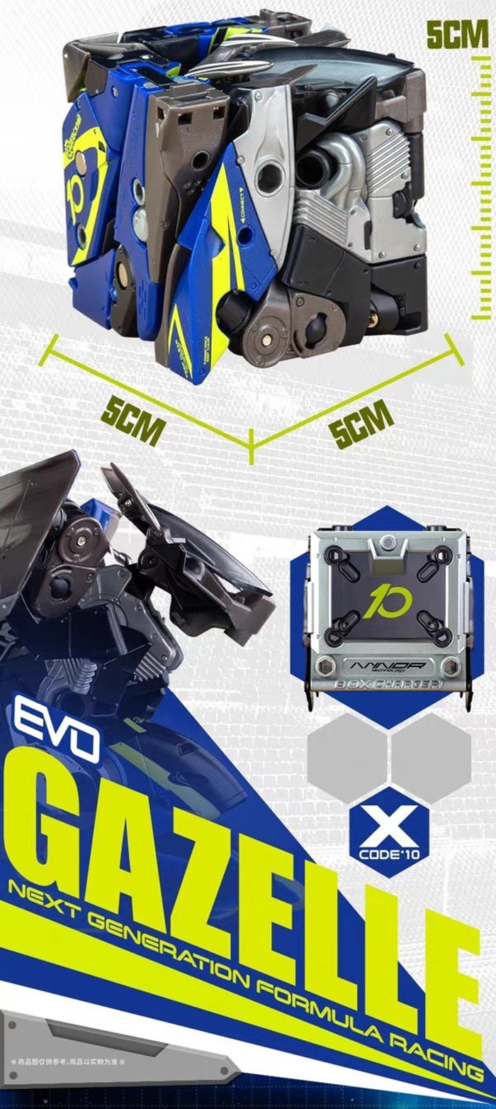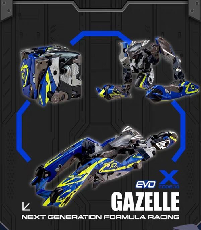 羚羊號:冷酷的藍、亮黃賽車配色,展現強大爆發力,變形為方塊時呈現「數字 10」。