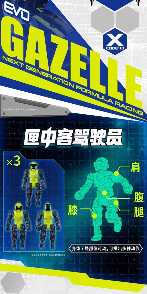 -套裝內附1個可動的「匣中客駕駛員 」,可放入單體賽車的駕駛艙內。