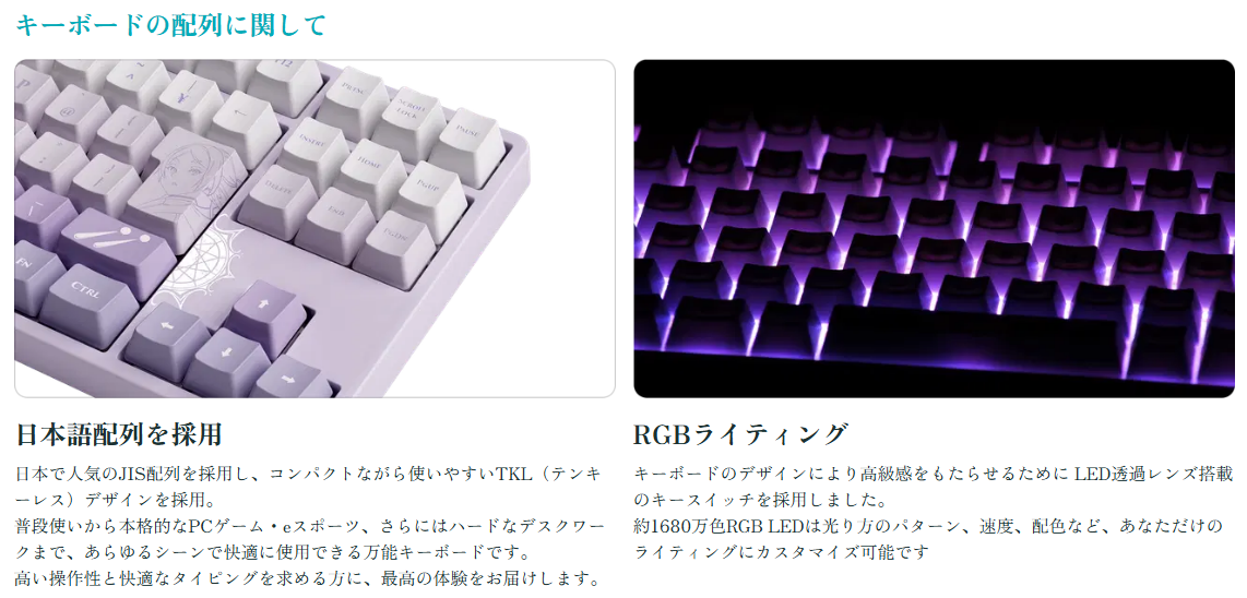 -支援Mac/Windows雙系統,可透過專屬日文驅動程式自訂各種設定。採用日文TKL(無數字區)鍵盤佈局,適合遊戲與日常使用。