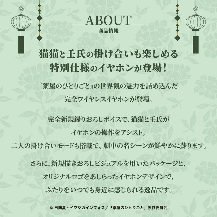 話題動畫《藥師少女的獨語》攜手日本人氣耳機品牌AVIOT,推出夢幻聯名款「TE-Q3-KSR」無線藍牙耳機!