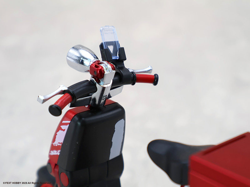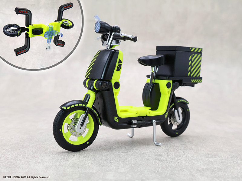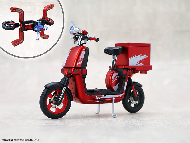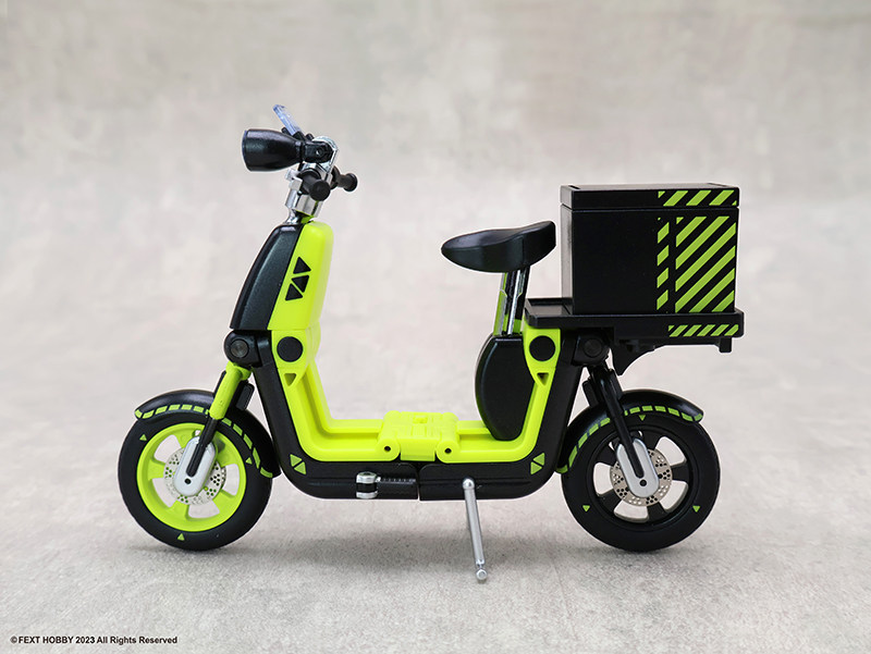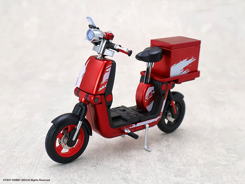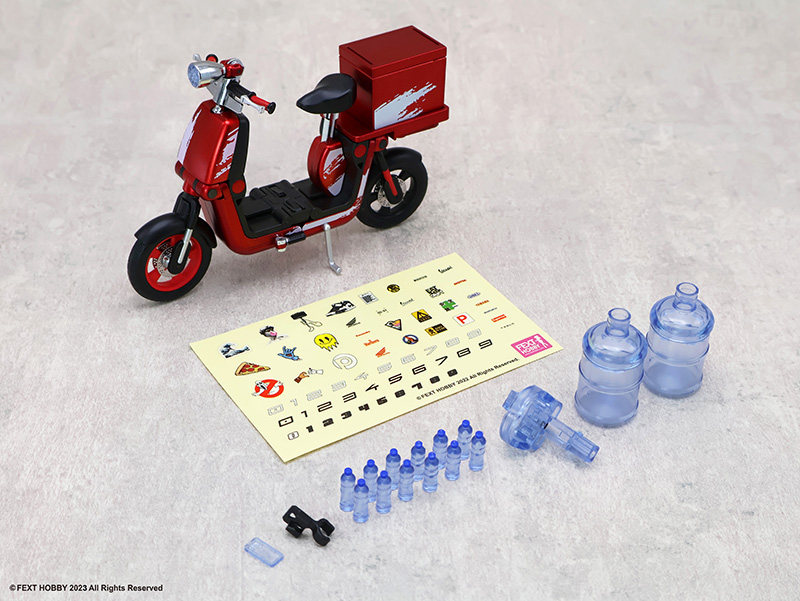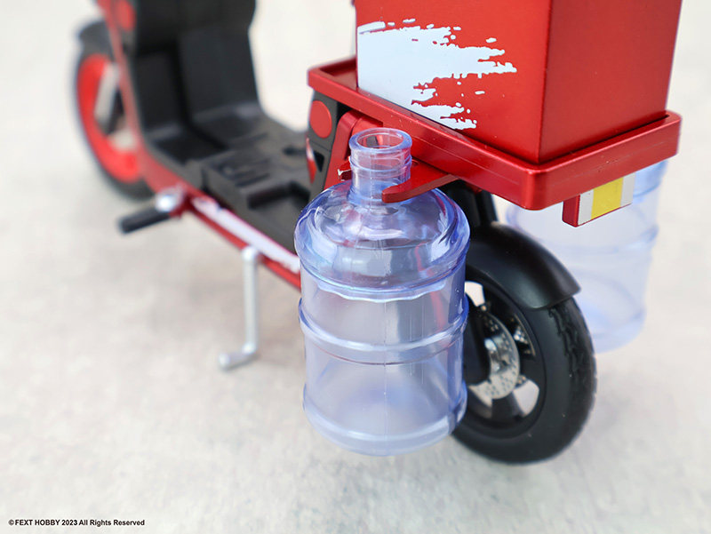 -隨車附贈充滿趣味的外送箱零件。箱體設計具備科幻風格,可安裝於車後座或由人偶手提,甚至能搭配其他生活小物進行情境拍攝。