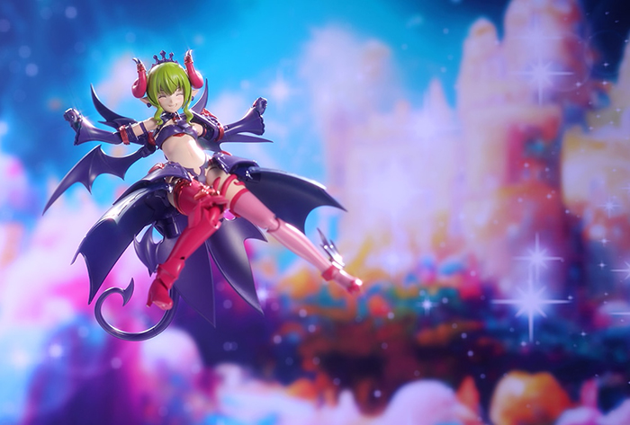 迎接阿爾卡納蒂亞系列的全新暗屬性版本!惡魔型Dears「薇兒蕾特」以ReACT-P(暗屬性風格)重返舞台,化身為擁有夢幻氣息卻暗藏力量的存在。這款塑膠模型讓你可以同時重現她的平時狀態與戰鬥形態,兼具可動表現與造型美感。