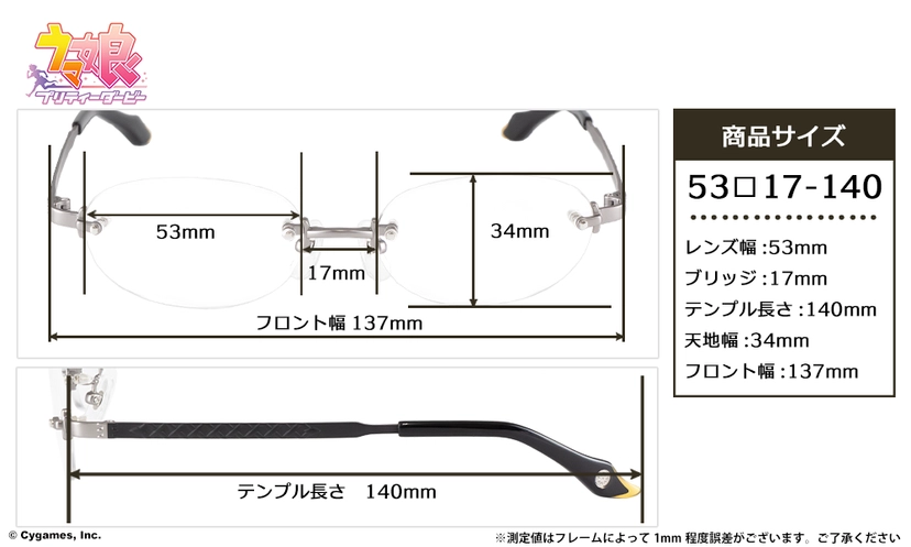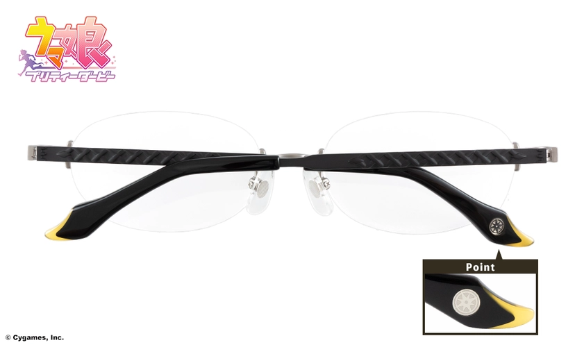 -鏡腿末端採用黑色與黃色拼接的特殊設計,模仿馬娘的耳朵形狀。