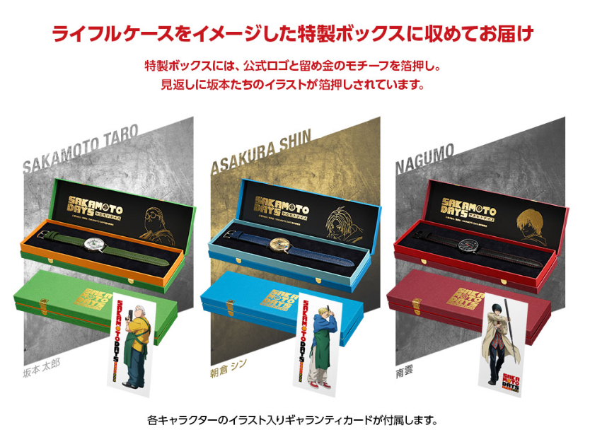 日本精品品牌PREMICO重磅推出! 配合動畫熱播,以《SAKAMOTO DAYS 坂本日常》中的三位核心人氣角色:坂本太郎、朝倉新、南雲為靈感,打造出細節極致講究的聯名錶款。