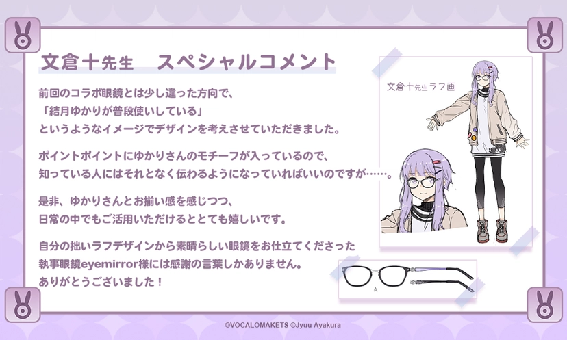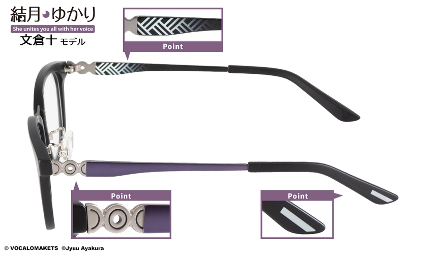 由《結月緣》的原畫師文倉十老師親自操刀設計,將其插畫美學與眼鏡工藝完美結合!這款眼鏡以「結月緣平時也會配戴的款式」為核心概念,將角色元素低調且精緻地融入細節中,是一款既時尚又充滿愛意的穿搭單品。