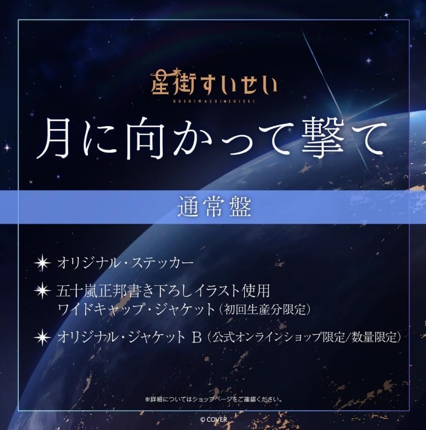 hololive超人氣歌姬星街彗星邁入2026年的最新力作—單曲《月に向かって撃て》(瞄準月亮發射)隆重登場!本次邀請到經典拍檔ナナホシ管弦楽団操刀,更收錄了由天才少女tuki.作詞曲、Nor編曲的全新版本《彗星》,以及TAKU INOUE重新混音的《comet》。