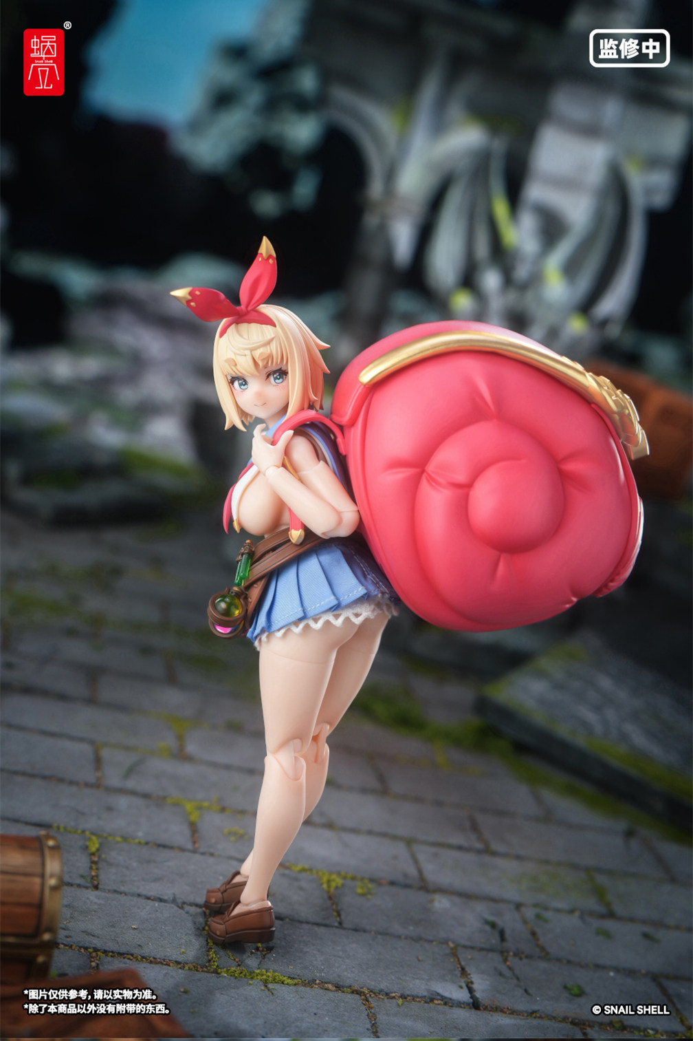 -內附精緻的冒險者長劍、盾牌以及標誌性的蝸牛殼背包。配件的細節紋理清晰,塗裝金屬感十足,完美重現 RPG 世界中的奇幻氛圍。