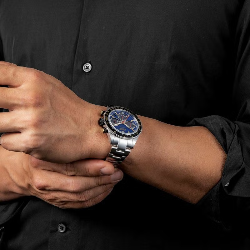 -應廣大粉絲熱烈要求而誕生的細節處理,錶盤結構融入了汽車儀表板與機械感元素,讓您在低頭看時間時,彷彿能聽見對臥四缸引擎的低沉咆哮。
