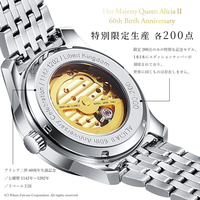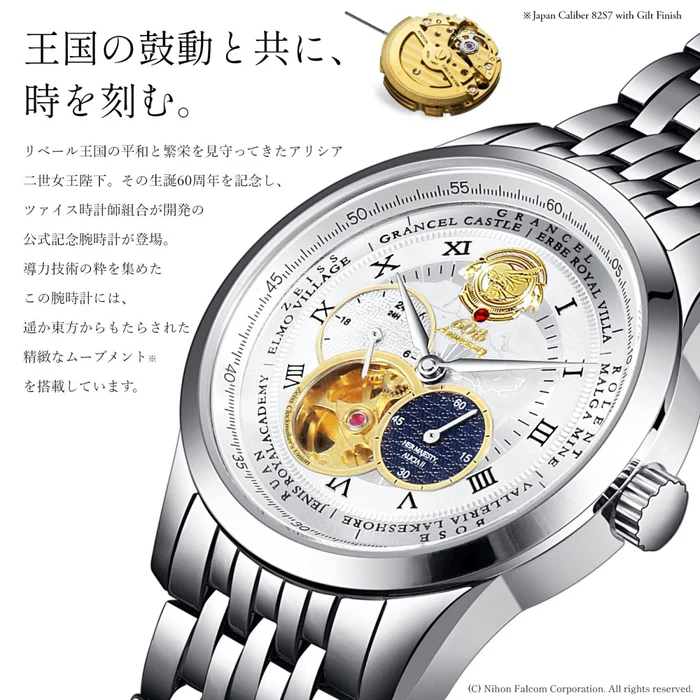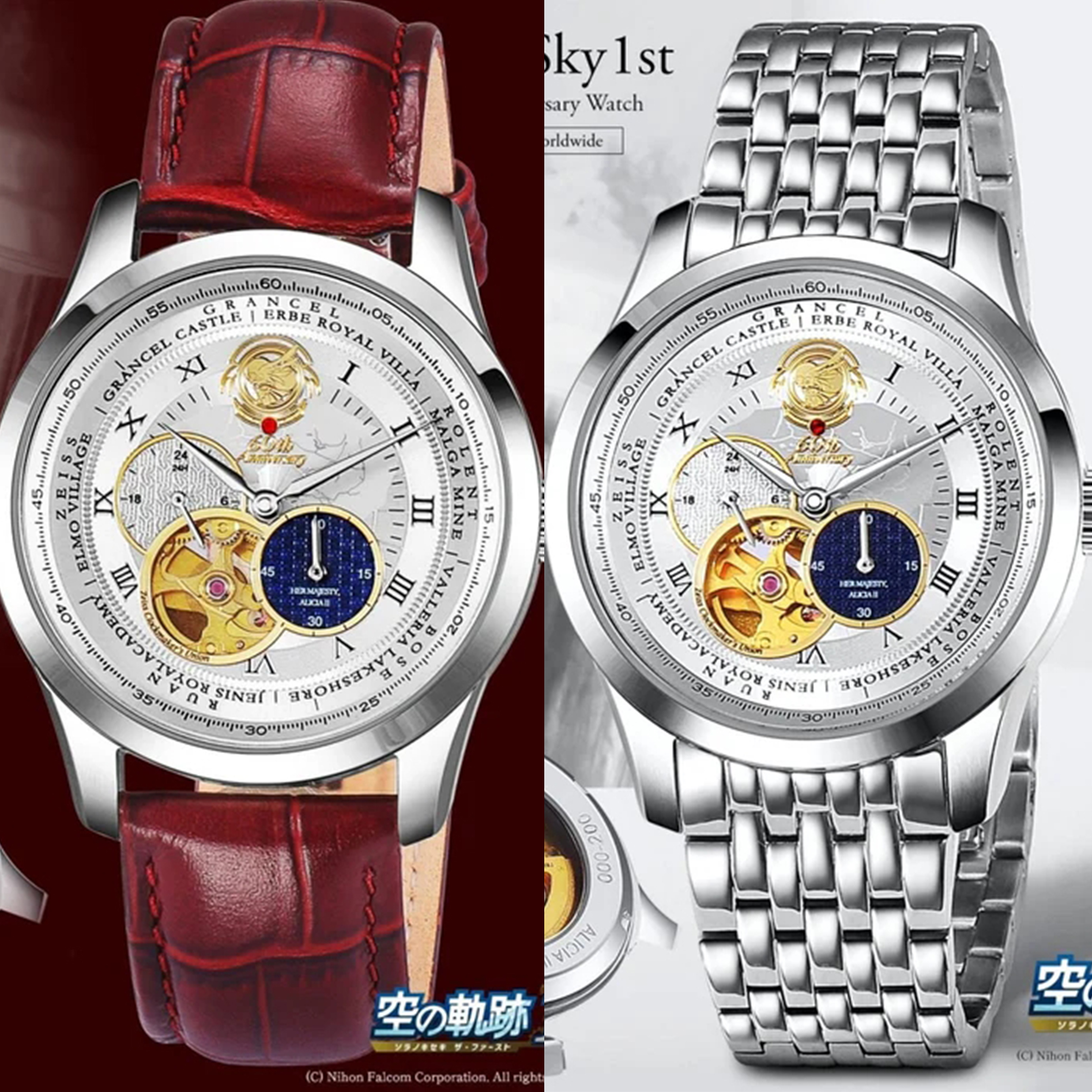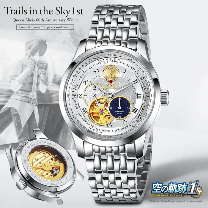 為慶祝經典RPG《空之軌跡 the 1st》發售20週年,特別推出以 「艾莉西亞二世即位60週年」 為主題的紀念機械腕錶。本次共有金屬錶帶款與皮革錶帶款兩種版本,將遊戲中的歷史設定與現實工藝結合,讓粉絲能將軌跡的世界觀佩戴於腕間。