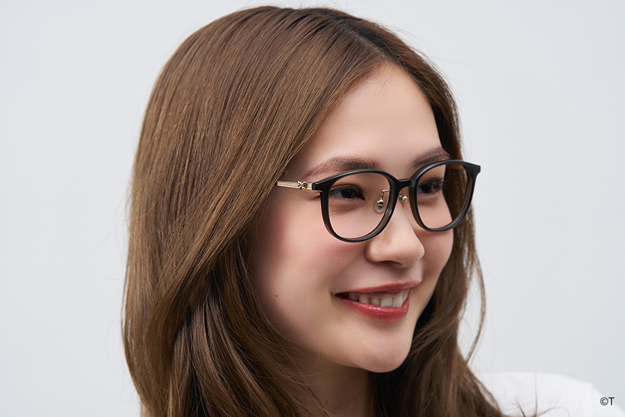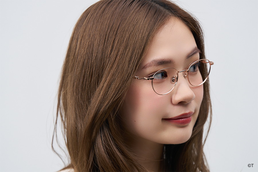 設計亮點:採用溫柔的波士頓圓框,鏡腳展現出動態的粉紅緞帶感,設計感極為纖細。