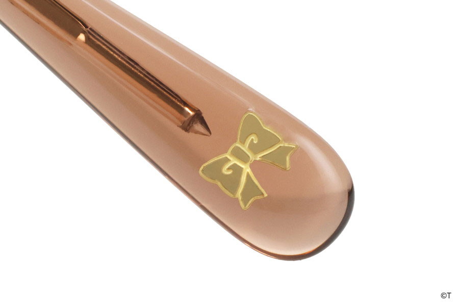 設計亮點:象徵兩人深厚「羈絆」的特別款!鏡腳採取左右不對稱設計,分別融入黑白天使服裝上的蕾絲與緞帶。