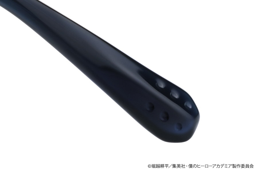 以相澤的制服黑色與捕縛布元素為靈感,鏡腳加入小紅點設計,簡約沉穩又不失個性!