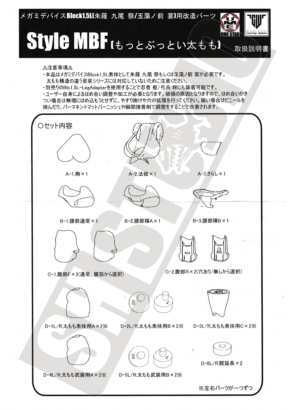 -此產品適配女神裝置 玉藻前 宴、朱羅 九尾 祭或BLOCK1.5素體。其他產品是否適用請自行測試。