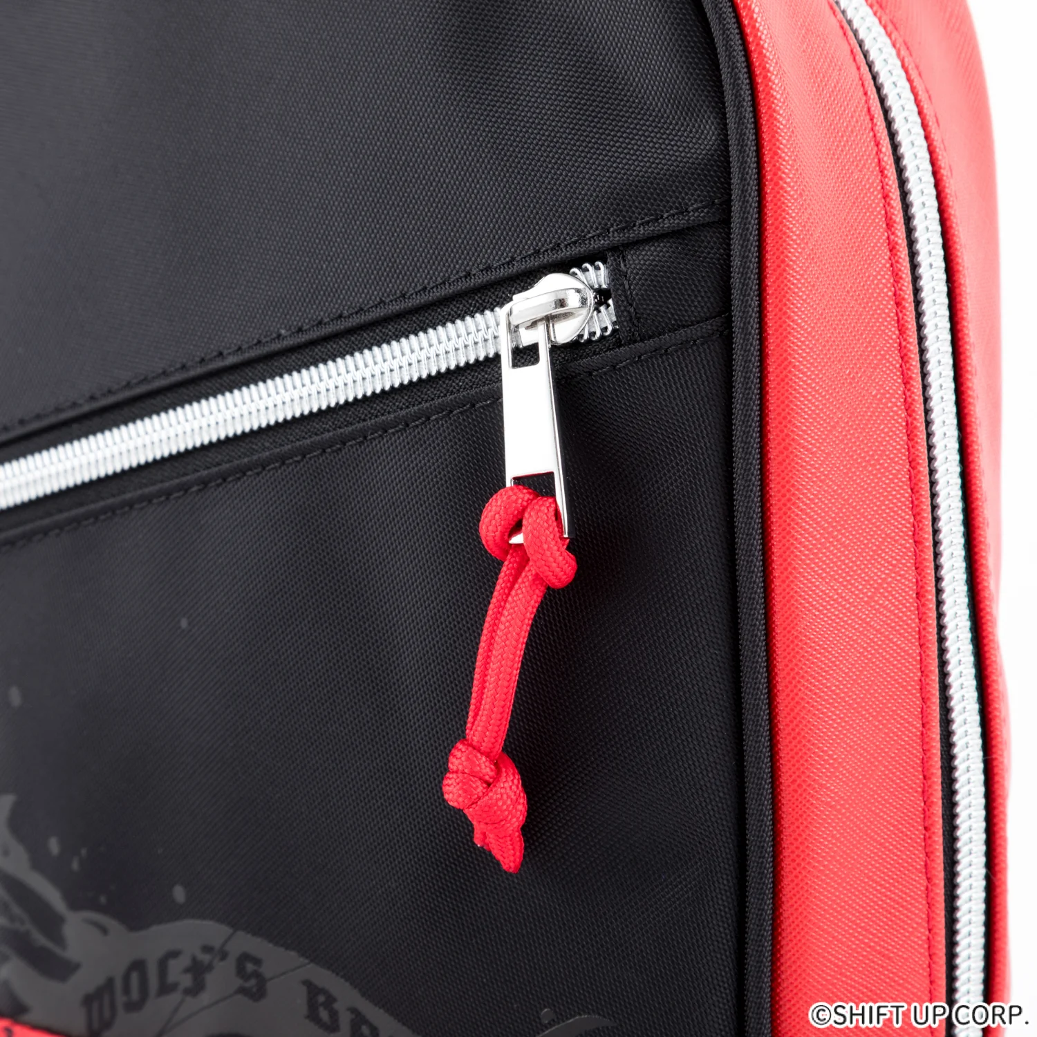 斜角拉鍊與紅色拉鍊頭增添視覺層次感,正面飾有狼之標誌「THE WOLF’S BANE」,內裡標籤以「REDHOOD’S TRACK」卡帶圖樣呈現,滿滿《RED ASH》活動的細節巧思。